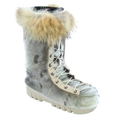 BOTTE EN FOURRURE MOCASSIN LOUP MARIN ET COYOTE