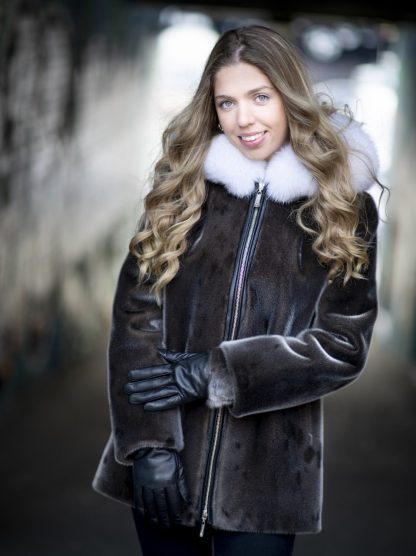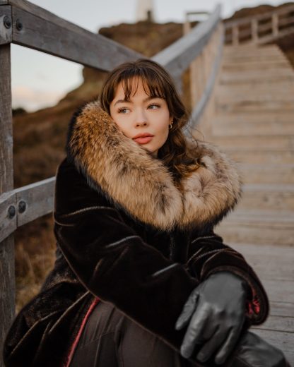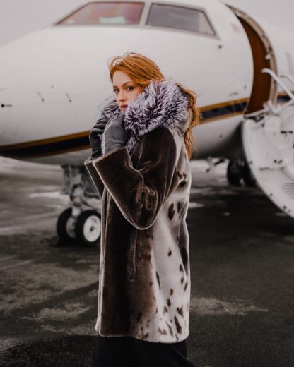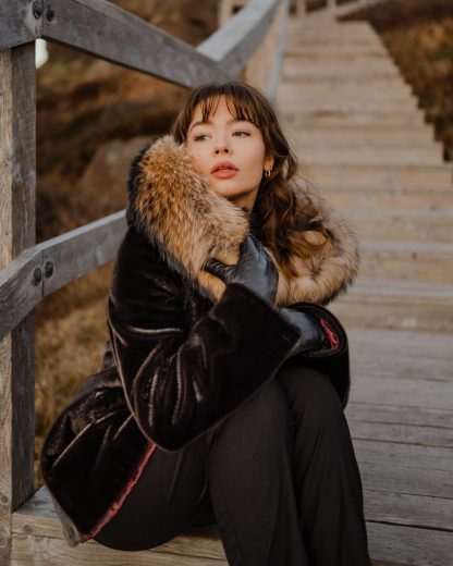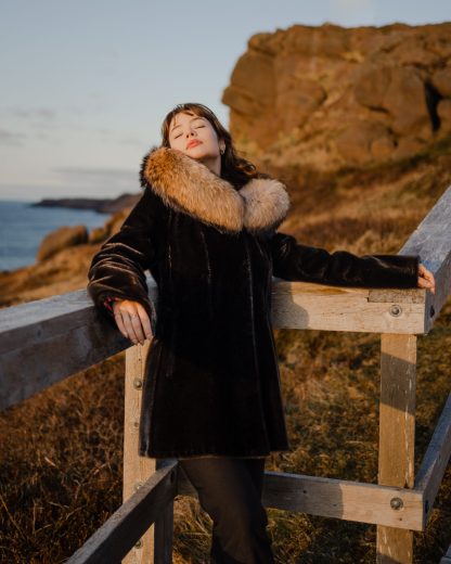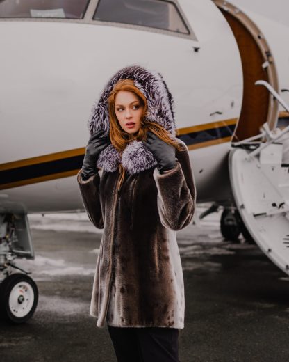 This is a classic style seal fur coat with modern style lines. Understated and beautiful! It is incredibly warm, wind resistant and water repellant. These natural and ethically sourced materials will stay beautiful and warm in harsh winter conditions.