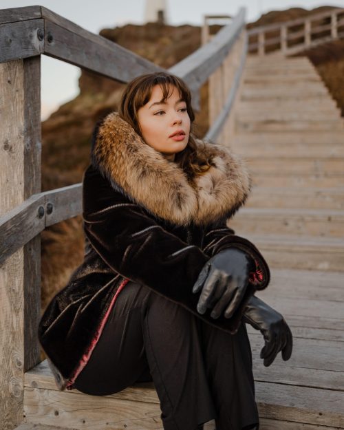 This is a classic style seal fur coat with modern style lines. Understated and beautiful! It is incredibly warm, wind resistant and water repellant. These natural and ethically sourced materials will stay beautiful and warm in harsh winter conditions.