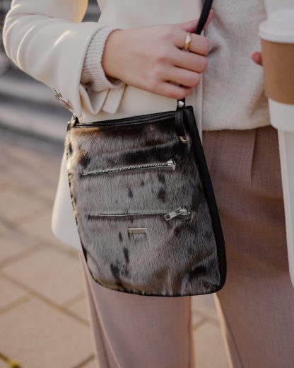 Seal Fur, Italian Lambskin, zipper closure, 1 internal pocket, Silk lining