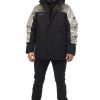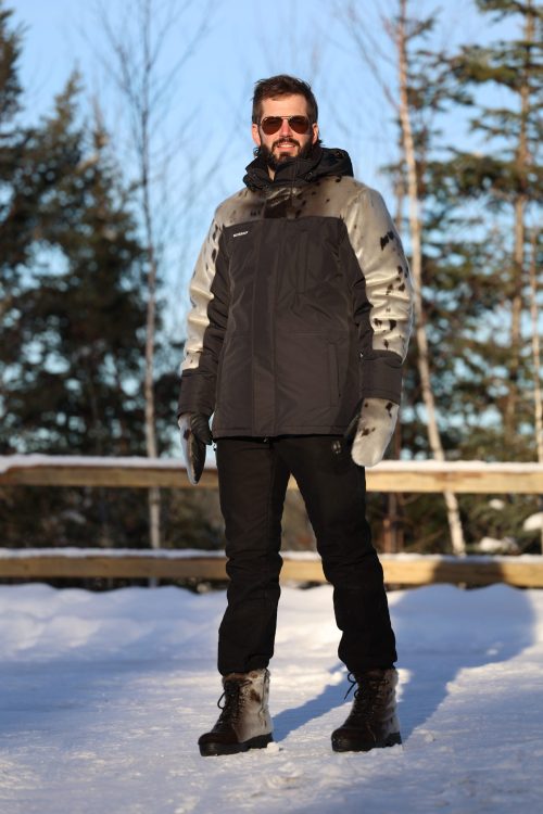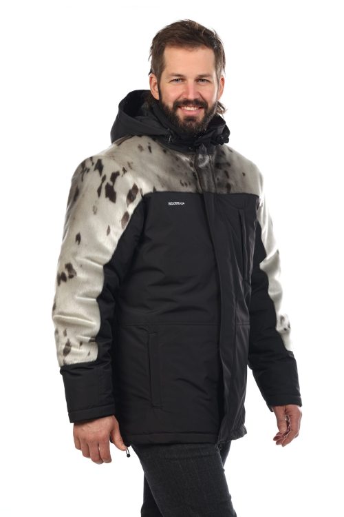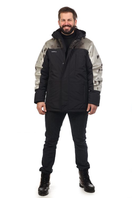 It’s lined with quilted black nylon and 8 oz polyester wadding. Elastic ribbing on the wrists prevents the infiltration of cold air and snow into the sleeves.
