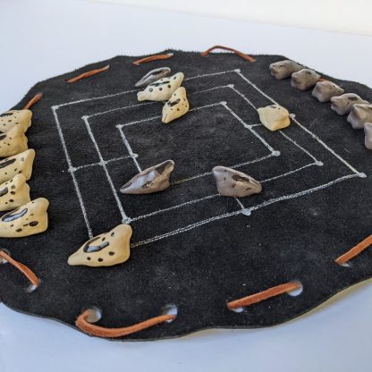 Merels is also known as Nine Men’s Morris is a strategy game dating back to the Roman Empire. It is a 2-player strategy game appropriate for all ages. You consider your moves and the effect it may have on your opponent. In this re-interpretation, we consider Seals and Sealing culture and its effect on both the people involved and the rest of the world.