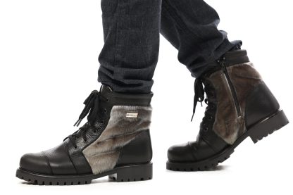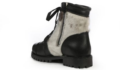 The black leather on the toe and heel of this boot makes cleaning and maintenance easier as there is less fur in the more vulnerable areas.