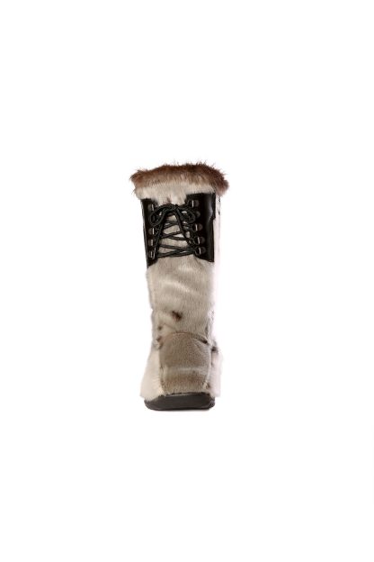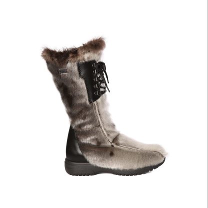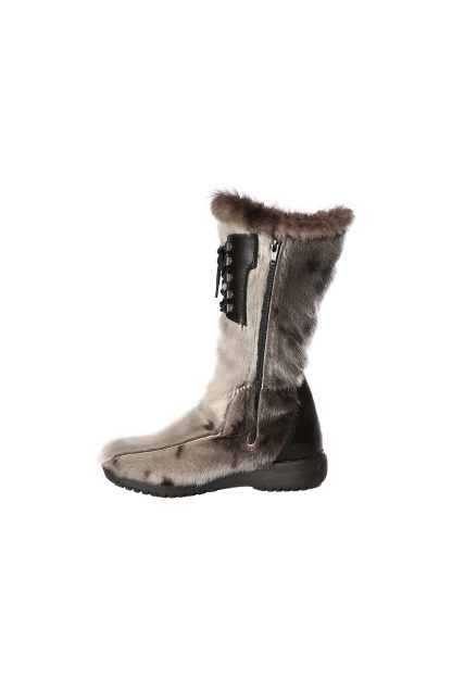 The eyecatching natural nuances of seal fur gives every pair a distinctive look. This boot is lined with sheep wool and topped with a natural beaver fur trim.