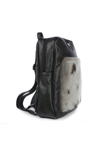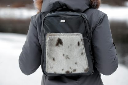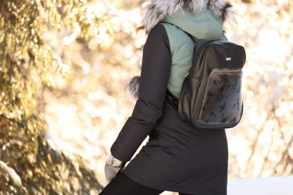 The natural seal Livia is kept closed with a zipper fastener. At the front, the seal fur creates a pocket closed by a magnetic tab.