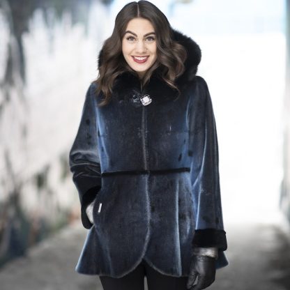 Fourrure de phoque, insert de castor cisaillé, renard noir, doublure Casha