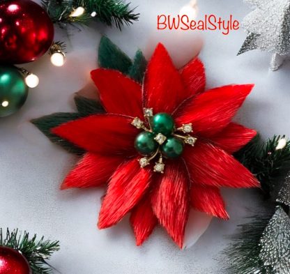 这个可爱的一品红胸针会让你沉浸在节日的气氛中。它们象征着善意和土著社区精神。这枚鲜艳的红色花朵胸针将照亮任何一个寒冷的冬天。