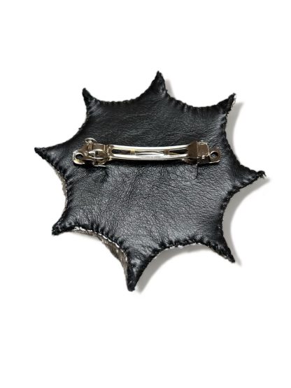 - Sealskin web, acrylic spider accent, genuine black leather backing and Snap clip