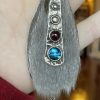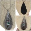 This modern and striking pendant necklace is a larger version of my previous pendant with abalone and garnet gemstones! It features a piece of full, rounded, teardrop-shaped seal fur that backs a rustic cast metal pendant. Rich garnet and abalone cabochons are set on the pendant, for a unique and beautiful piece! The pendant is ~60mmmm in length, and 25mm at its widest point, and the chain is stainless steel. Your necklace will have similar medium grey/spotted seal fur, and cabochons of the same stone type, but each pendant is unique. Displayed chain length is approximately 50cm (20”), but it can be made at a longer length – please indicate at checkout if you would like a different chain style. Phocal Stone Designs will modify your order to your specifications if possible.
