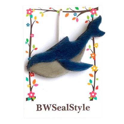 Natural Seal Skin, Blue dyed Seal Skin, Grey felt interior. Ribbon Hanger.