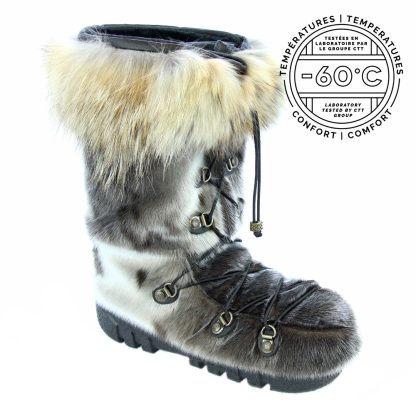 You will love these unique sealskin boots with their 70s style. They are perfect for stronger calves because of their lacing closing system. Designed to brave the Canadian winters, this new model is already one of the most remarkable of the Grenier collection.