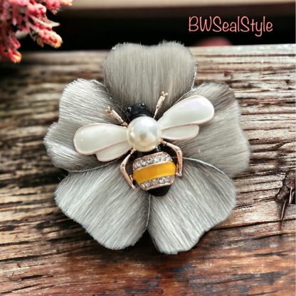 Add a touch of nature-inspired charm to your outfit with this Sealskin Bumblebee Brooch! It’s 2.5 inches wide and features real harp sealskin with a cute acrylic Bumblebee design. The genuine leather backing ensures it lasts. Perfect for jazzing up any outfit.