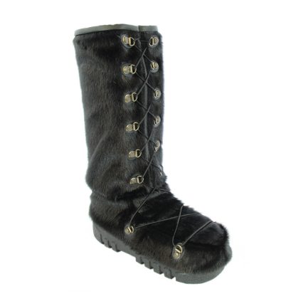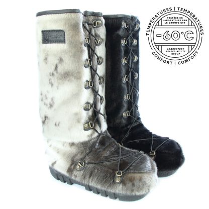 Get noticed in these sealskin Rebelle boots. Made from black or natural sealskin, they also have real leather details and a lace-up closing system with nice eyelets. Longer than the regular model, Rebelle will give style to your winter outfits in any occasion!