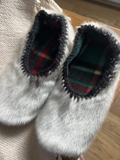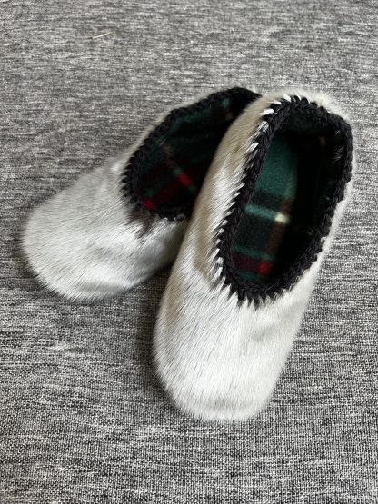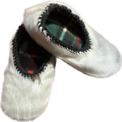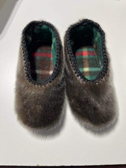 Elevate your comfort and style with MonaSeams Sealskin Slippers, meticulously crafted from genuine sealskin with leather bottoms, featuring NL Tartan fleece lining and elegant crochet trim, available in a range of sizes from 6.5 to 8 inches, ensuring both unparalleled coziness and timeless sophistication in every step you take.