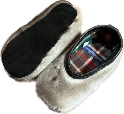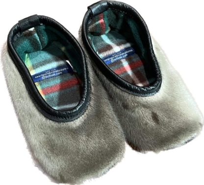 No matter the season of the year you’ll find yourself choosing these comfortable slippers. The leather soles add durability, longevity, and grip. If your size and color are not listed here drop us a line and we would be more than happy to make a custom pair just for you! *note* anything larger will have an added cost based on the amount of Seal Skin used. You may never find two pairs alike as the Seal Skin has its own unique patterns.