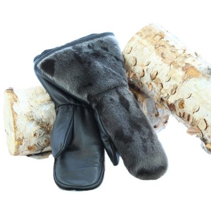 Snowmobile mittens in natural seal skin