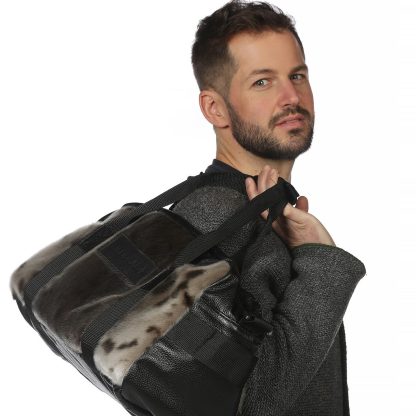 Black leather and natural seal fur